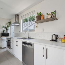 A light filled functional space with updated galley kitchen, heat pump and gas hot water.