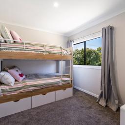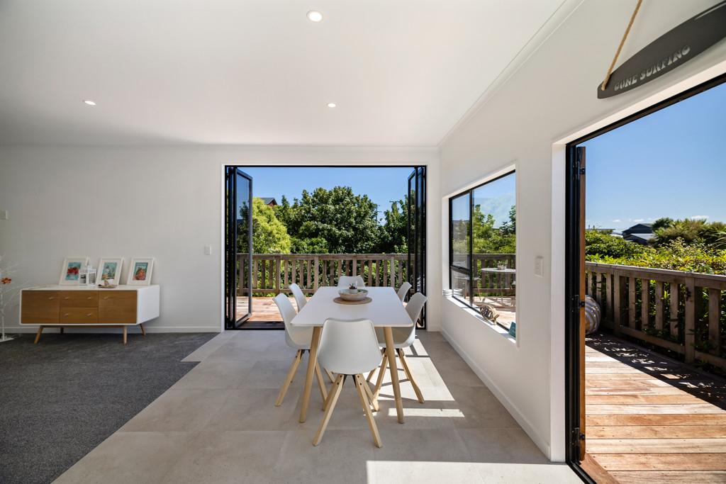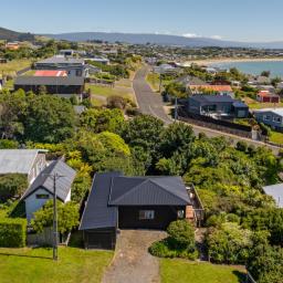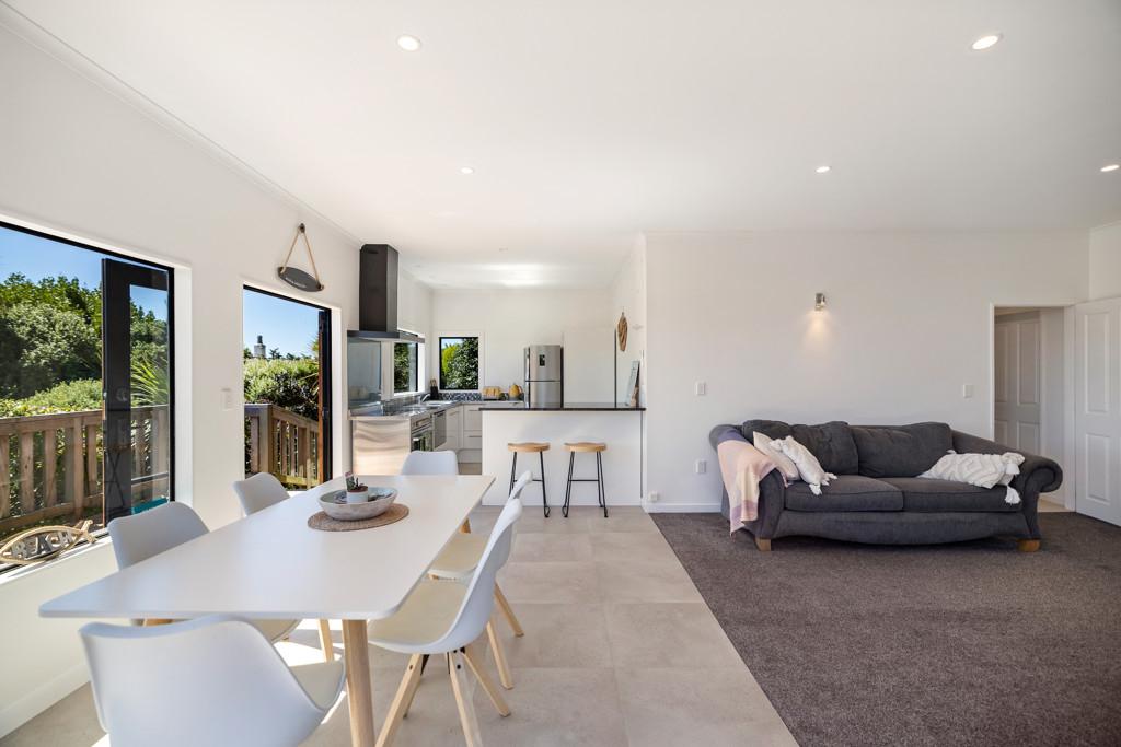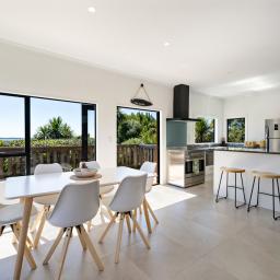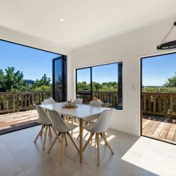 A wrap-around veranda and bi-fold doors create effortless indoor-outdoor living, ideal for summer entertaining. Inside, the open-plan kitchen, dining and living area enjoys ocean views, stainless steel benchtops and appliances, a breakfast bar and heat pump heating.