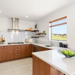 - Contemporary kitchen, dining & living with elevated views