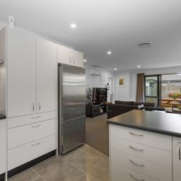 Step inside to discover a light-filled, open-plan layout that includes a well-designed kitchen, living, and dining area. This space flows effortlessly through double-glazed doors to a covered Bowranda, ideal for outdoor dining and entertaining friends and family throughout the seasons. The home's thoughtful design incorporates a DVS system, ensuring optimal air quality and comfort year-round, while the Rinnai Infinity hot water system delivers hot water on demand, so you never run out during those busy mornings.