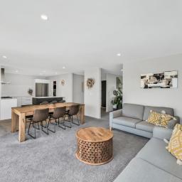 Designed with family living firmly in mind, the home offers exceptional living flexibility. The central open-plan kitchen and dining area flows into two semi-separate living zones, giving everyone room to spread out - perfect for families who want togetherness without being on top of each other. Adding even more versatility is a separate media room or playroom, ideal for movie nights, a kids’ retreat, home office or quiet space.