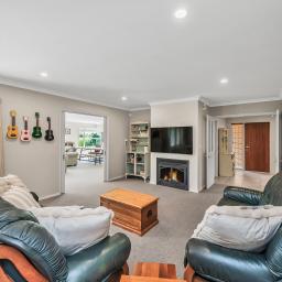 Comfort is well covered with an in-built gas fire complemented by two heat pumps, keeping the home cosy in winter and comfortable through the warmer months.