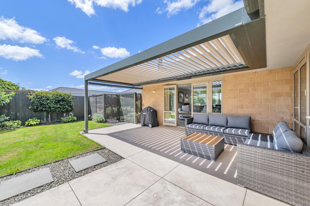 Indoor-outdoor flow is a standout here. The mechanical louvre-covered patio creates a sheltered space you’ll actually use year-round - whether it’s summer barbecues, evening drinks or hosting family celebrations without worrying about the weather.