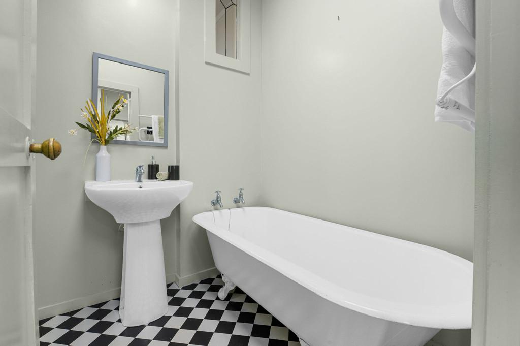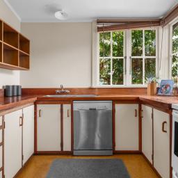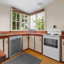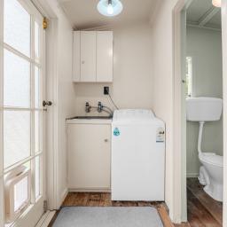 Inside, the home offers three bedrooms and one bathroom, complemented by the convenience of a separate toilet and a practical laundry nook. The layout is functional, while charming touches like the checkered bathroom floor and built-in shelving throughout bring a real sense of personality, perfectly capturing the unique spirit of the home.