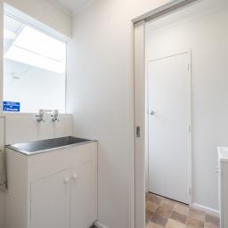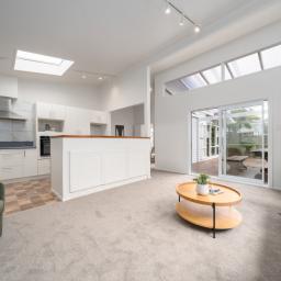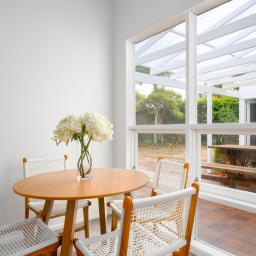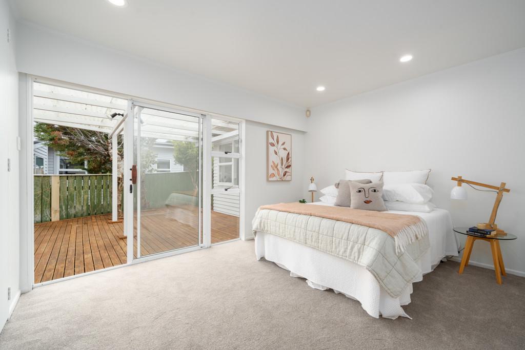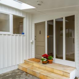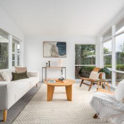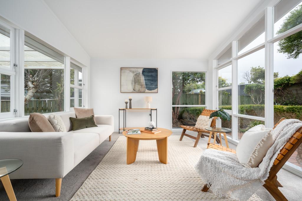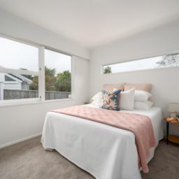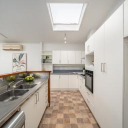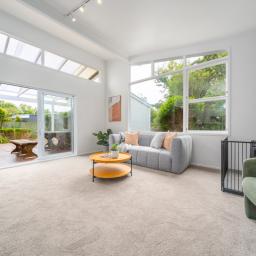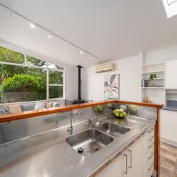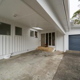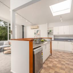 The large windows are a feature of our first generation Churton park houses and 5 Chudleigh Grove is no exception with an extra high ceiling height with a skylight for the open plan kitchen/family room and with ranch sliders to the patio and deck from 2 of the bedrooms. The North facing back yard is a private sun trap, with a "shed" waiting for whatever purpose you decide to use it for.