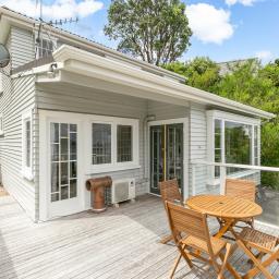 - Ground level: Fully permitted, fully self-contained one-bedroom flat with open-plan living, its own entrance and private deck, currently returning $420 per week