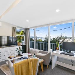 Completing the picture is a single garage on road frontage, along with space to park an additional vehicle in front of the garage, a valuable bonus in this tightly held neighbourhood. A genuinely adaptable home in a superbly convenient location, just five minutes off-peak to Wellington’s CBD. A standout Wadestown opportunity — elevated, flexible and ready to impress.