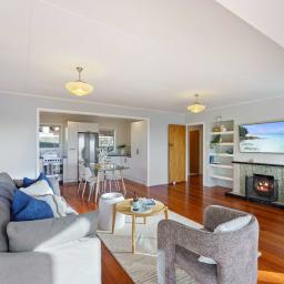 Set on a generous section with views of Kapiti Island, this well-renovated weatherboard home offers space, comfort, and flexibility in a popular Waikanae location.