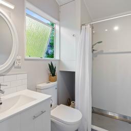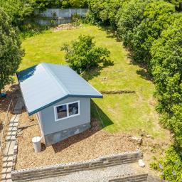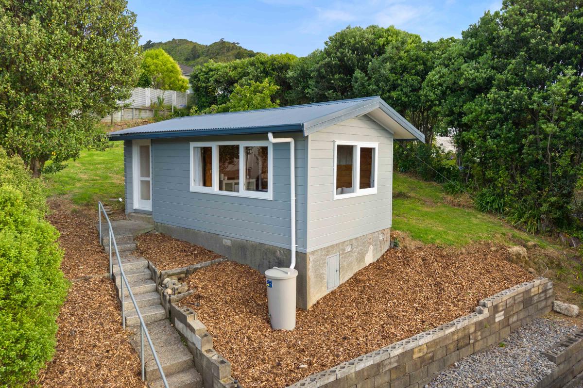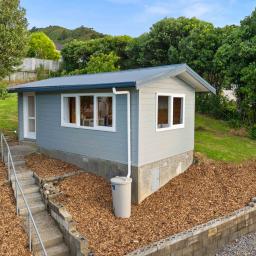 The main house includes two bedrooms, a modernised bathroom with separate toilet, and an updated laundry. Open-plan living and kitchen create a welcoming hub, warmed by a heat pump and open fireplace. Mostly double glazed, it’s a home designed for easy year-round living. Step out onto the deck from the living area or master bedroom and enjoy the outlook – perfect for relaxing or entertaining.