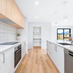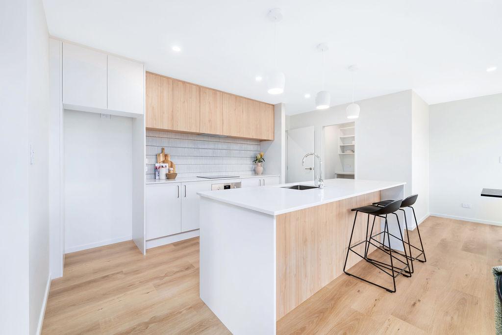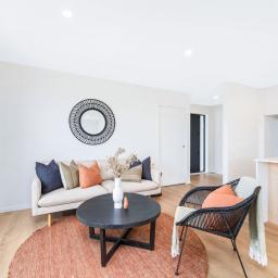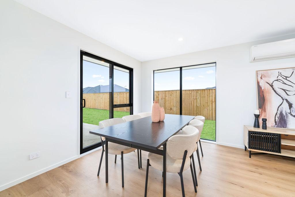 At the heart of the home is a light-filled open-plan kitchen, dining, and living space. The kitchen is modern and practical, featuring stone benchtops, a walk-in pantry, and clean finishes, all positioned to keep you connected while hosting or keeping an eye on everyday life. A second lounge sits alongside, neatly tucked away behind a cavity slider, ideal for movie nights, kids’ space, or a quiet escape.