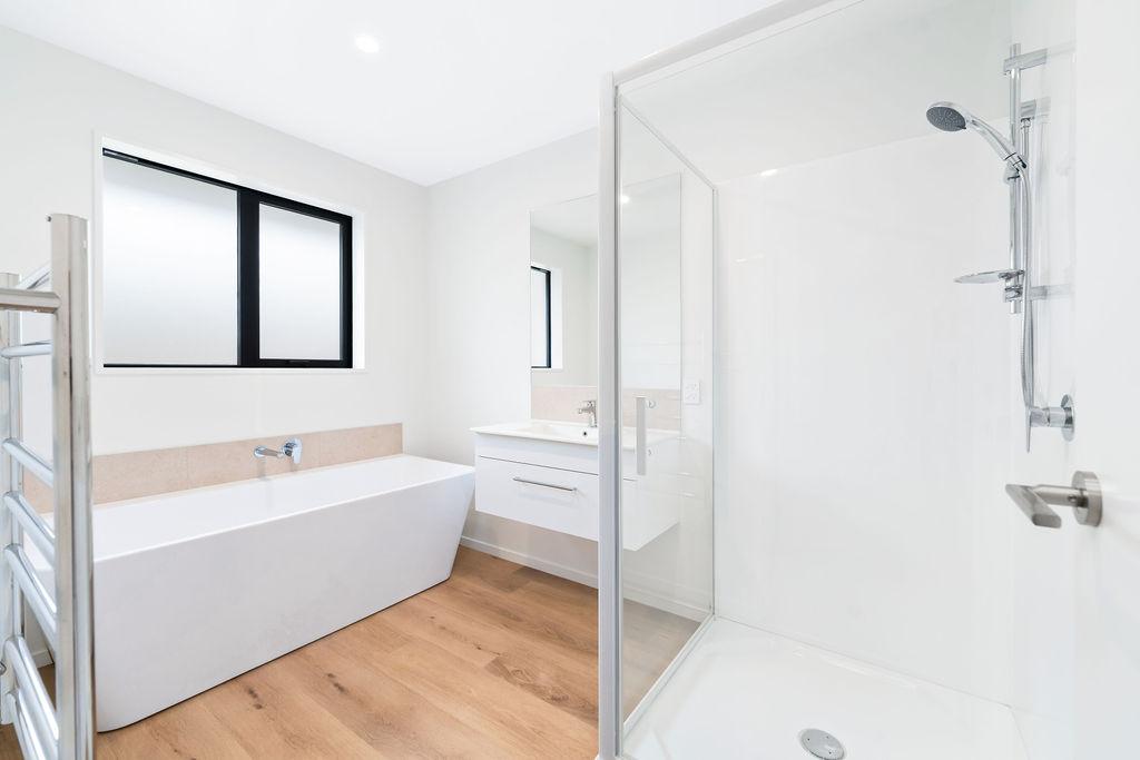 Accommodation is generous, with three well-sized double bedrooms. The master includes a walk-in wardrobe, ensuite, and direct access to the patio, perfect for slow mornings or evening wind-downs. The two further bedrooms are both doubles and include built-in wardrobes, serviced by a smart family bathroom with a standalone bath and shower, plus a separate toilet with vanity for added convenience.