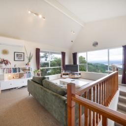 Soaked in all-day sun, this elevated home delivers panoramic Wellington views that will have you pausing mid-coffee just to admire them. Inside, the living room features chapel ceilings, adding a sense of space and drama you wouldn't expect from such a well-designed home - think cosy, not cramped.