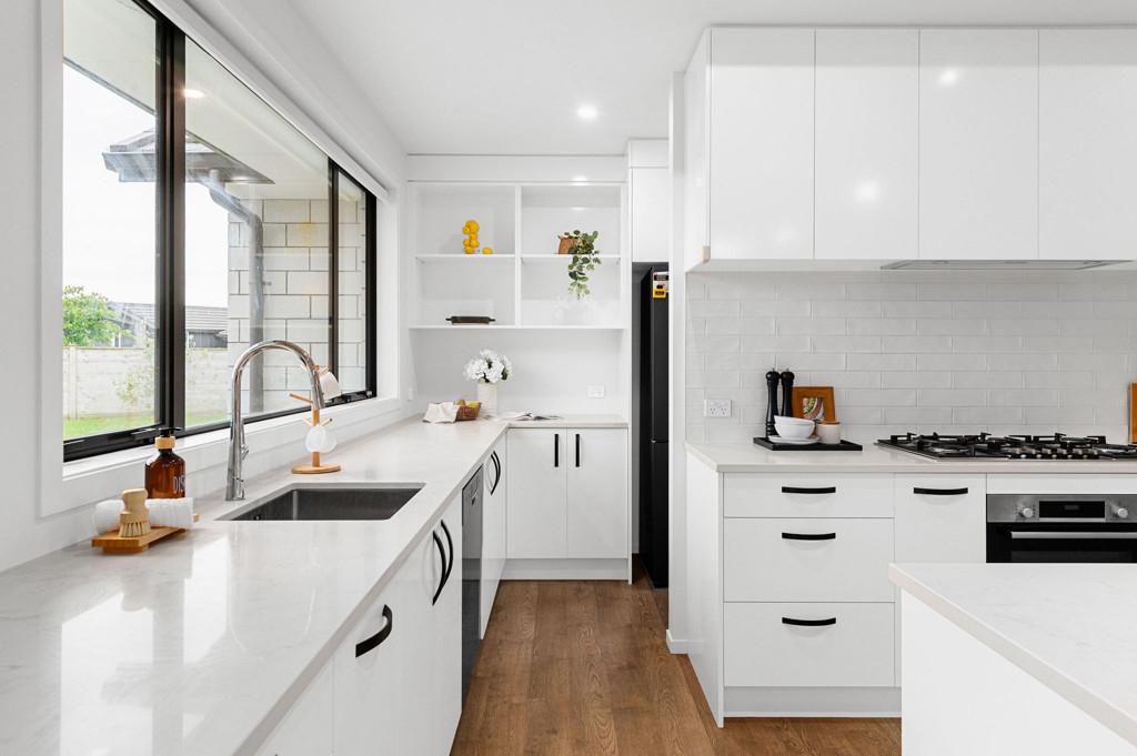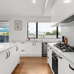 Inside, the home feels open and calm. Raked ceilings define the main living zone, drawing in light and enhancing volume, while the vaulted formal lounge provides a separate space to retreat or entertain. The kitchen is well appointed with stone benchtops, a six-burner gas cooktop and a walk-in scullery - functional, considered, and designed for daily use.