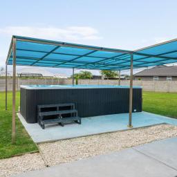 North-facing living connects naturally to a covered outdoor setting, anchored by a swimming spa pool. There is room here to entertain, to relax, and to further shape the landscape over time.
