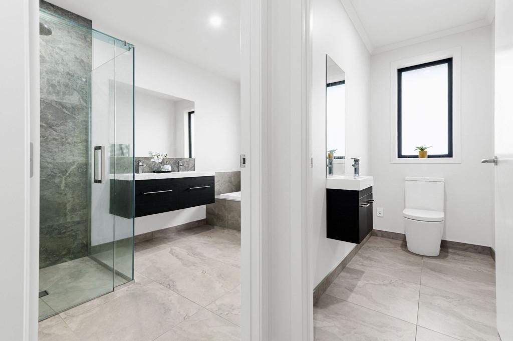 Accommodation is generous. Five genuine bedrooms are supported by a rumpus room and a dedicated office nook, allowing the home to adapt easily to family life, guests or working from home. The master suite opens outdoors and includes a walk-in wardrobe and ensuite. Bathrooms are finished with full tiling and clean, modern detailing, complemented by a guest powder room and separate laundry.