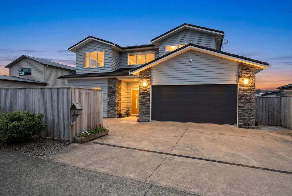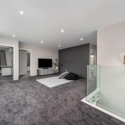 The upper level has a spacious family lounge; four bedrooms with an en-suite bathroom and XL walk in wardrobe for the main bedroom, plus a tiled family bathroom.