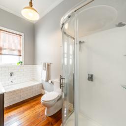 The bathroom is modern with a separate bath and shower, and there is a large separate laundry, and outdoor second toilet.