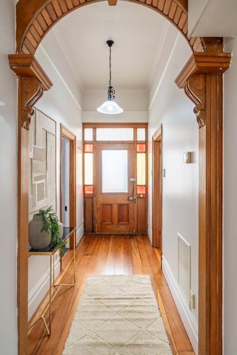 Double glazed in the three bedrooms, the bathroom, and laundry, with gas central heating and insulation, this home is warm and cosy throughout. Character features include two ornate fireplaces, leadlights and stained glass , timber floors and high stud.