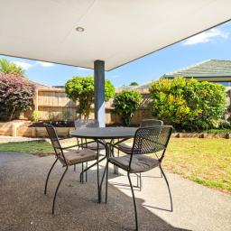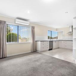Offering a perfect blend of convenience, comfort, and low-maintenance living, this charming three-bedroom home is ideally situated within walking distance of the town centre, ensuring all essential amenities are close at hand. The heart of the home features a generous open-plan space that flows effortlessly between the living room, dining area, and kitchen, making it ideal for both everyday life and entertaining. From here, direct access leads to a covered outdoor space, a delightful spot for alfresco dining or enjoying your morning coffee.
