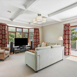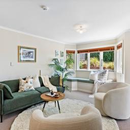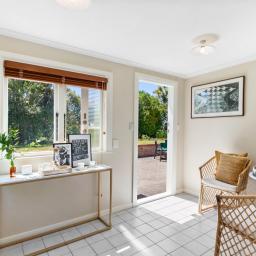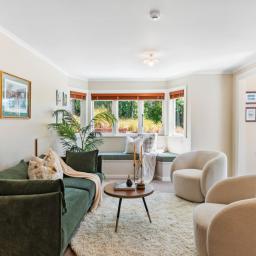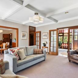 The main living room flows seamlessly to a deck and into the established garden beyond, a space made for relaxed entertaining, or simply listening to the birdsong. An interconnecting dining room leads through to a thoughtfully renovated kitchen, ensuring everyday living and hosting feel effortless and connected.