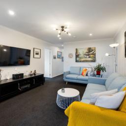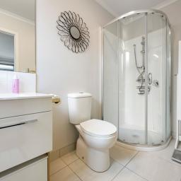 All three bedrooms are well proportioned, with the main bedroom enjoying its own ensuite for a touch of separation. The double garage provides secure parking and extra storage, and the private lane setting means minimal traffic and a safe environment for families.