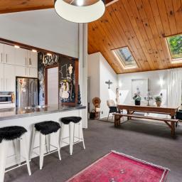 Step inside and you're immediately struck by the warmth, light, and sense of space. Skylights flood the living areas with sunshine, giving the home an airy, uplifting feel throughout the day. Multiple living spaces provide flexibility for everyday family routines, creativity, or quiet retreat. The main lounge flows seamlessly to a sun-drenched deck, perfect for entertaining, relaxing, or simply soaking up the elevated views.
