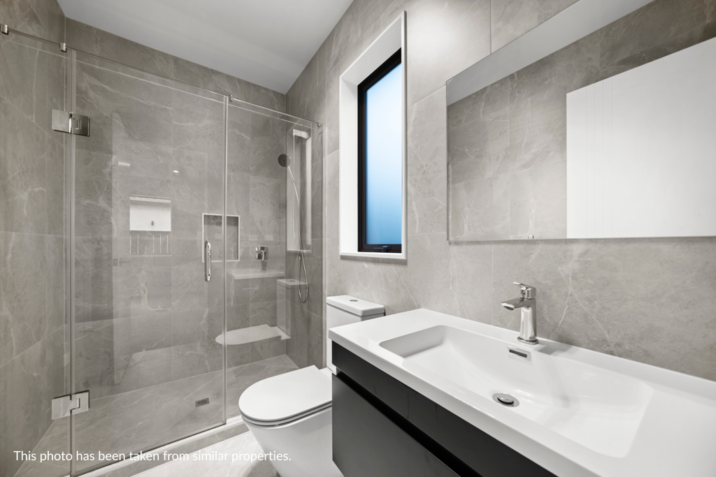 • Extra features include quality appliances, under-floor heating in bathrooms, central air conditioning, EV charger, and high-stud ceiling.