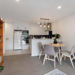 Being tucked away from the road, you will find this terrace townhouse surprisingly quiet, complete with double glazed joinery throughout. You will discover a gorgeous kitchen, carefully designed to provide maximum bench tops and heaps of storage for the creative cook. It enjoys 2 exclusive carparks right by the entrance and a private wooden deck accessed through French doors from the open plan lounge.
