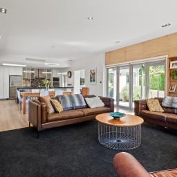 Designed with flexibility in mind, the home offers five bedrooms (or four plus a dedicated office), three well-appointed bathrooms, and two expansive living areas. The thoughtful layout is ideal for both entertaining and relaxed family living, with seamless indoor-outdoor flow from the main bedroom and both living spaces, perfect for making the most of Arrowtown's sun-soaked summer days.