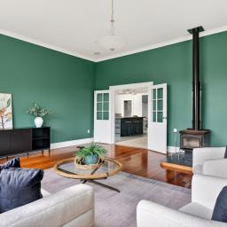 At its heart is a grand character home, thoughtfully relocated and beautifully enhanced, spanning an impressive 350sqm. From the moment you step inside, the home immediately captures you with its high-stud ceilings, rich character features, and sense of warmth that only a home like this can provide. Traditional charm blends seamlessly with modern convenience, creating spaces that feel both welcoming and functional.