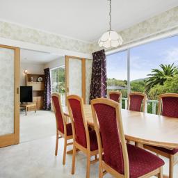 The dining space is perfectly positioned to enjoy the outlook and opens to the large living room, with internal doors providing the option to separate spaces if desired.
