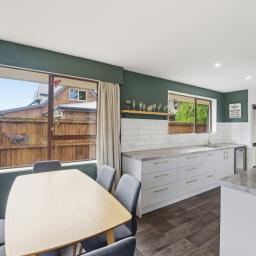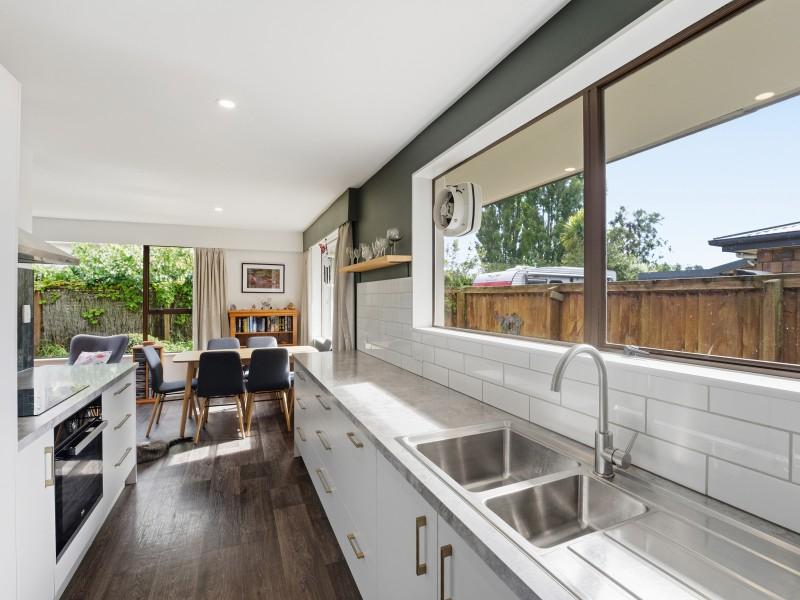 Bathed in natural light, the north-facing layout has been thoughtfully configured for modern living. Upgraded throughout, the home delivers effortless comfort and functionality. The galley kitchen is a standout, cleverly designed to maximise both storage and workspace, and connects seamlessly with the dining and living areas. This open, sun-filled zone enjoys excellent flow and opens via ranchslider to a covered outdoor entertaining area—ideal for relaxed gatherings or quiet evenings at home.