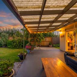Outside, the fully fenced section is extremely private, low maintenance and perfectly positioned to capture the sun. Practicality hasn’t been overlooked, with a double carport making day-to-day living easy, and a garden shed conveniently positioned for the tools and mower.