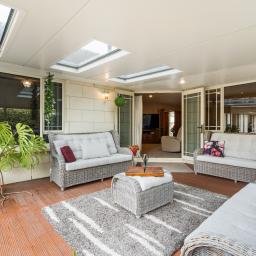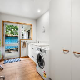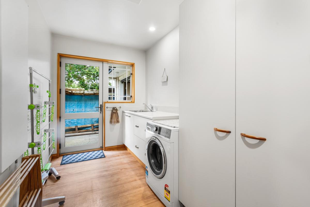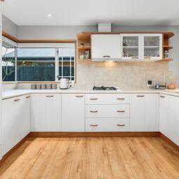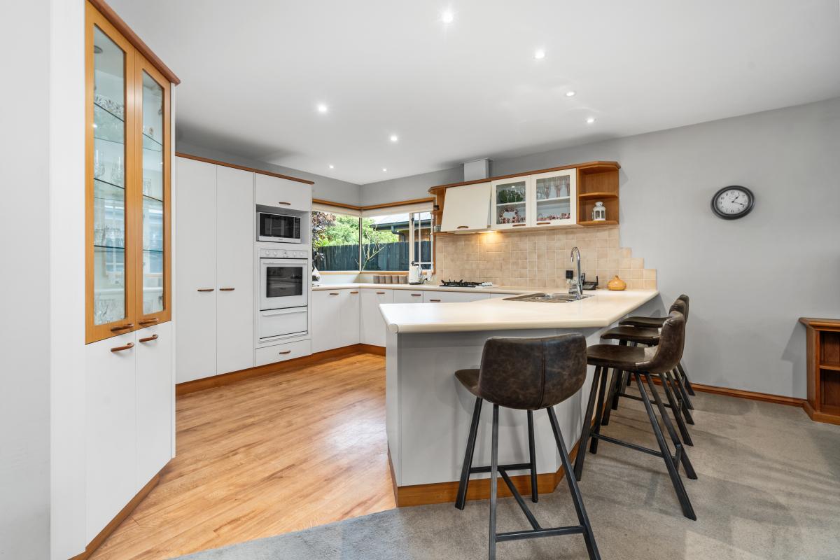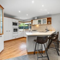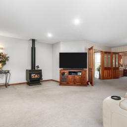 The open plan living space is anchored by a log burner on wetback that keeps the home warm and efficient through the cooler months. The kitchen is practical and well appointed with a wall oven and gas hobs, perfectly positioned to serve the heart of the home. The 2nd lounge offers a versatile space overlooking the front garden and street, great for families who need extra space.