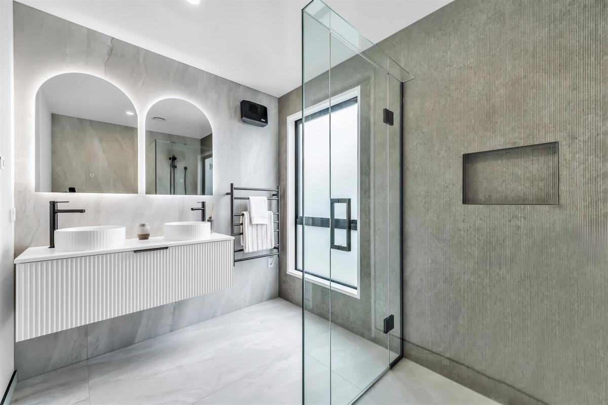 Entertain guests effortlessly in the expansive outdoor area, complete with extensive decking for al fresco dining and leisure. Inside, discover the opulence of tiled bathrooms, enhanced by basin top vanities. The master suite is a haven of comfort, featuring his & her walk-in robes. The additional guest bathroom is meticulously appointed with high-end finishes, & a separate toilet with basin ensures every aspect of comfort is catered for.