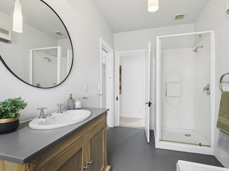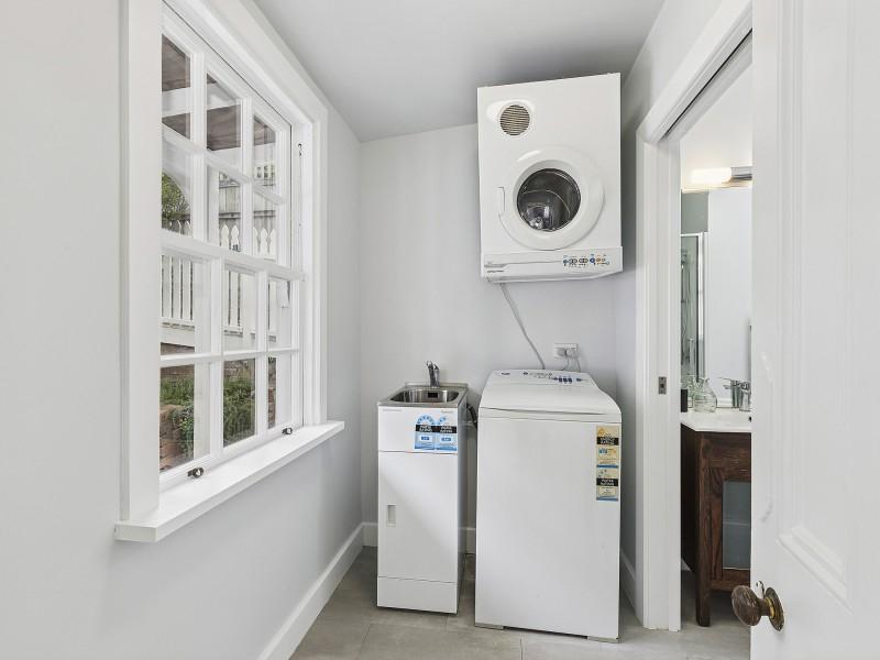 - Two bathrooms including one with a bath, with laundry facilities incorporated for everyday practicality