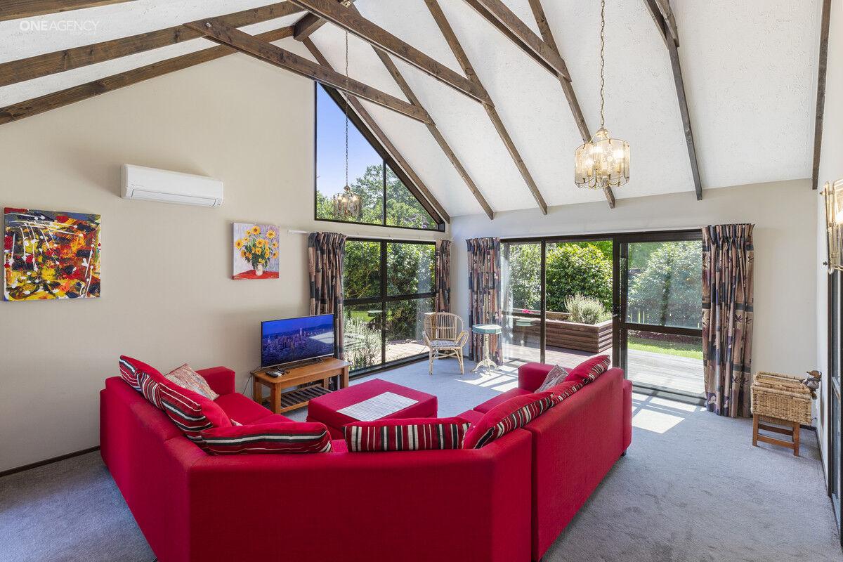 At the heart of the home is the spacious open-plan kitchen and dining area, flowing through to a large lounge. Both living spaces feature stunning cathedral ceilings, creating an impressive sense of space and light perfect for family living and entertaining. Sliding doors from both areas open out to north-facing decks, ideal for soaking up the sun and hosting guests.