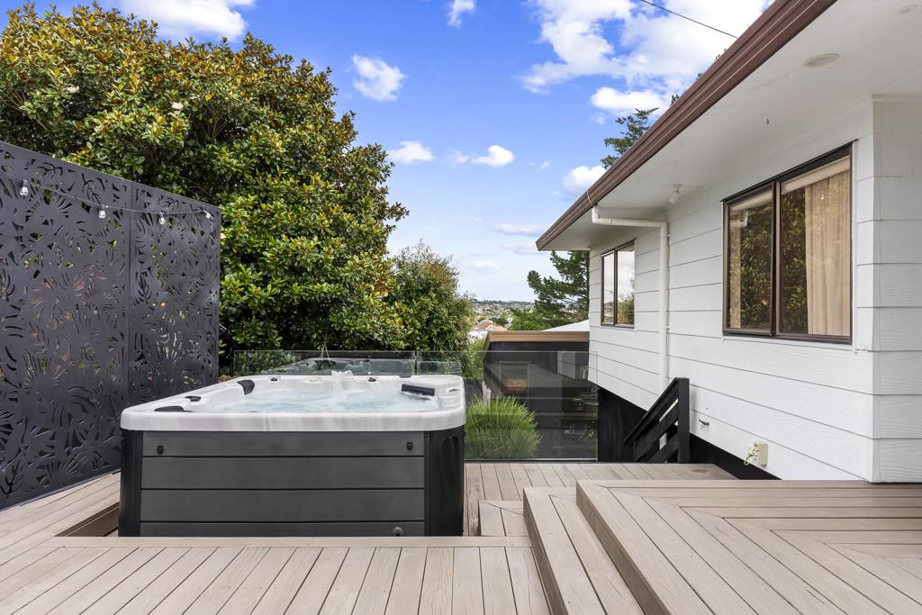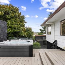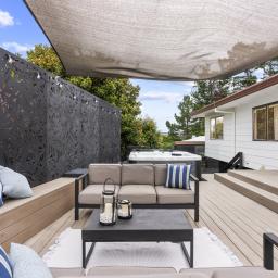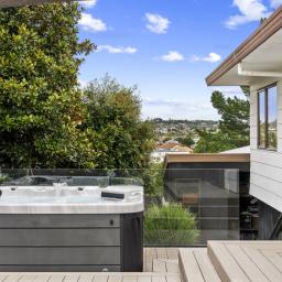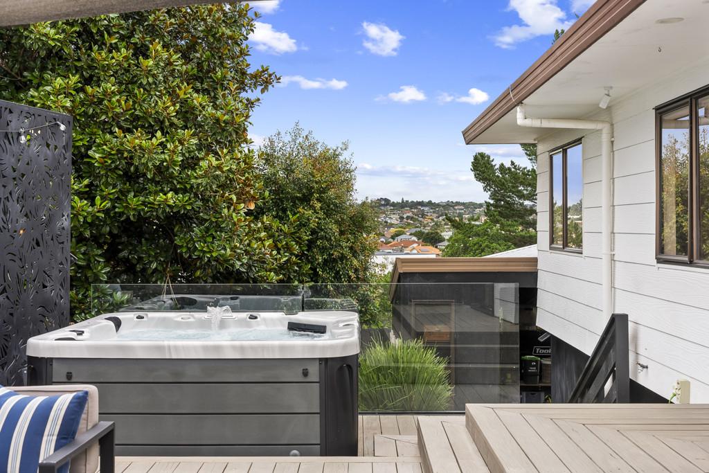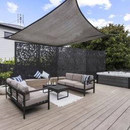 Relax in the spa beneath the stars, or keep an eye on the kids and pets playing on the lawn. It's a compact yet cleverly planned outdoor domain that feels like your own private sanctuary.