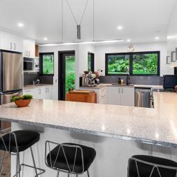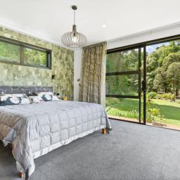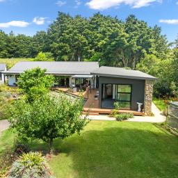 The main residence offers four bedrooms, two bathrooms, and an office nook providing flexible and comfortable living for families of all stages. Polished concrete floors anchor the home with modern elegance, complemented by double glazed windows that enhance energy efficiency and year-round comfort. A heat transfer system ensures warmth is shared throughout, while practical, future-focused inclusions including an EV rapid charging dock, extensive garaging, large sheds and multiple storage options that support both lifestyle living and working from home. The master suite is a true retreat, spacious and serene, complete with a walk-in wardrobe, ensuite, and a private outdoor shower that invites you to reconnect with nature in complete privacy. This is a home designed for connection, retreat and flexibility - equally suited to relaxed family life or hosting with ease.