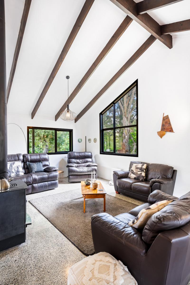 Beyond the main residence, the property unfolds into a range of additional accommodation options. A self-contained sleepout with kitchenette and bathroom provides ideal space for extended family, guests, teenagers or short-stay use, while a separate cabin currently utilised for woofers adds another layer of versatility. These spaces create genuine opportunities for multi-generational living, guest accommodation or supplementary income, all without compromising privacy.