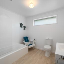 There are three bedrooms in total. The master is especially well considered, with its own bathroom and a large walk-in shower which is so easily accessible. In fact, accessibility has been quietly built into the home — wider-than-standard doorways make moving through the house easier now and into the future, without it feeling clinical or obvious.