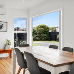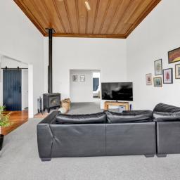 Comfort is assured year-round with partial double glazing and aluminium joinery, a cosy log fire, and two heat pumps, while the thoughtful layout flows effortlessly to the outdoors.