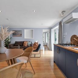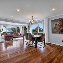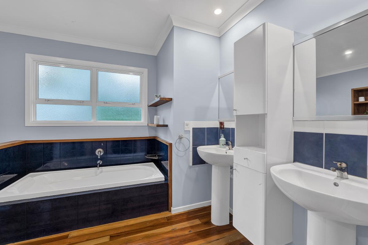 Privately positioned down a right of way and surrounded by established trees, this spacious Westown home offers a calm, family-friendly setting with flexibility at its core. Set across two levels, the layout works effortlessly for busy households, with sunny open-plan living upstairs flowing to an elevated deck, warm wooden floors, a generous kitchen with deep blue tones, and a gas fire creating an inviting family hub. Three bedrooms and a well-considered bathroom complete the upper level, designed to keep mornings running smoothly.