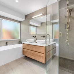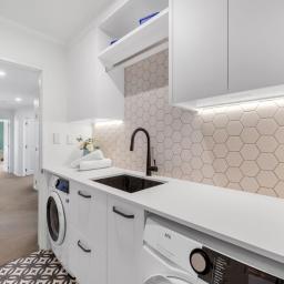 This home offers four generously sized bedrooms, including a master with direct backyard access, and both the ensuite and family bathroom are modernised and feature double sinks., providing added convenience for busy households. Additional off-street parking complements the double internal-access garage, offering practicality for everyday living. A fully fenced garden ensures a safe haven for children and pets, while a separate, modernised laundry provides excellent storage.