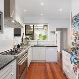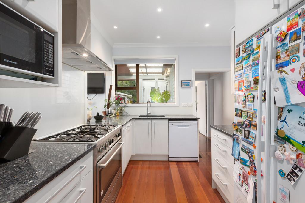 The open-plan kitchen and dining area flows straight onto a sunny deck overlooking the north-east facing garden. Perfect for morning coffees, weekend BBQs, or keeping an eye on the kids, this secure flat section makes family life effortless. The upgraded kitchen features a stone benchtop, gas oven and cooktop, and walk-in pantry.