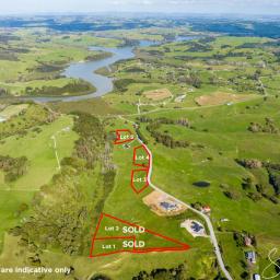A larger landholding with a sloping contour and a pegged-out house site, Lot 4 captures open rural views with a small peep of the water. The building platform sits slightly down the hill, offering shelter and privacy while still enjoying the outlook. Ideal for buyers wanting space and a quieter, tucked-away feel.