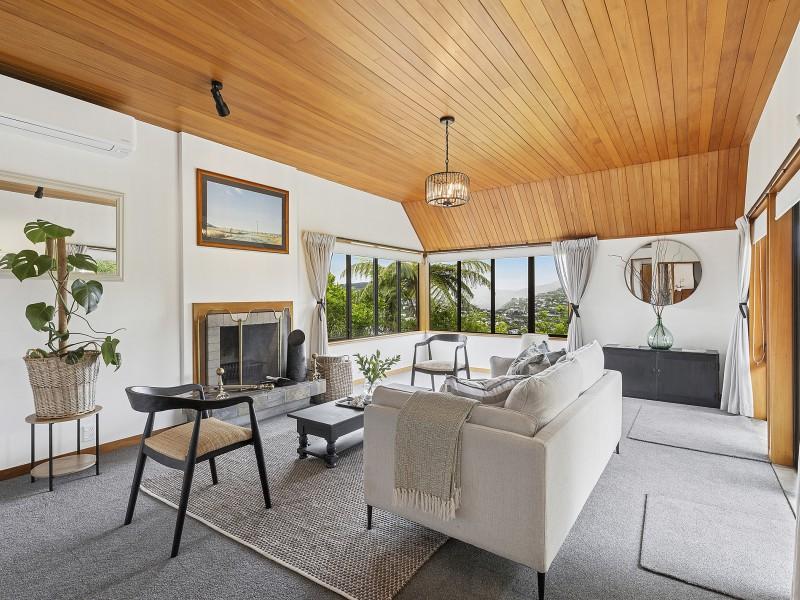 Tucked away at the end of a driveway and surrounded by native bush, 50 Amapur Drive, Khandallah offers outstanding privacy, all-day sunshine and a calm connection to nature. Elevated and peaceful, the home enjoys beautiful views over Khandallah, complemented by several secluded outdoor areas where you can unwind and enjoy the sun.