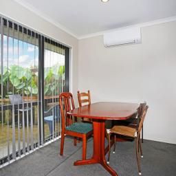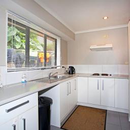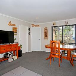 Two double bedrooms, open plan living, combined bathroom and toilet (shower only), and laundry in the single garage. Small enclosed courtyard.