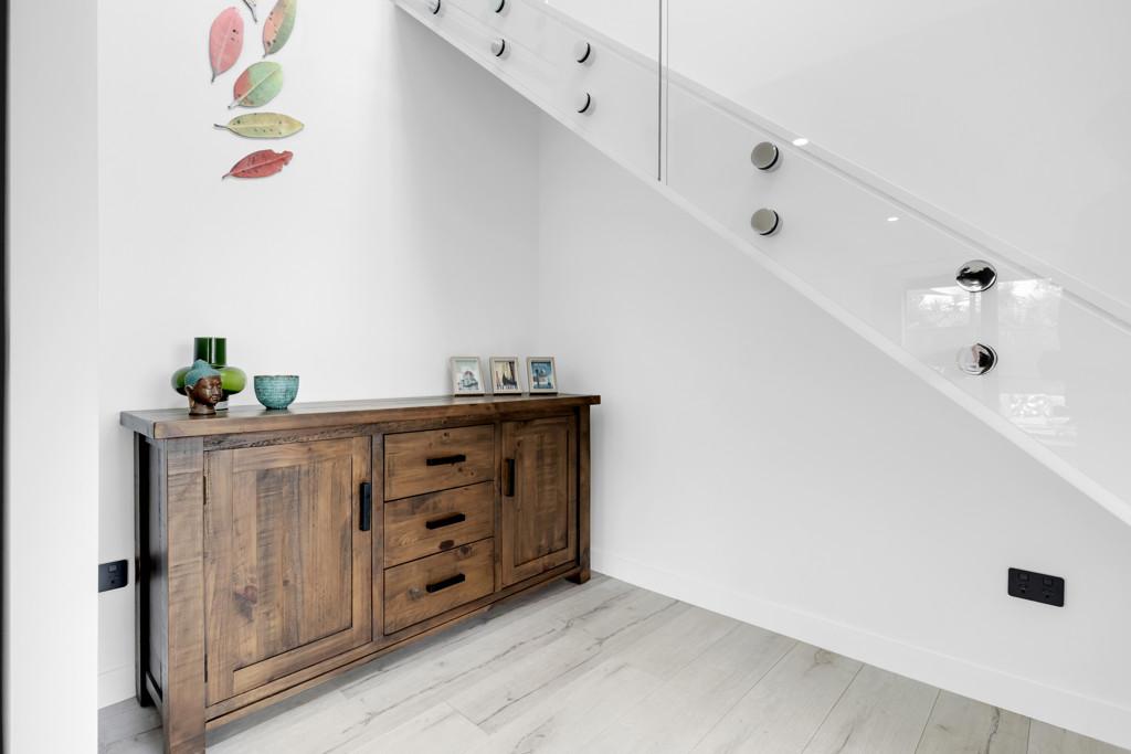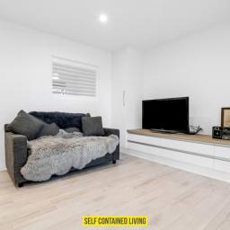 The home features a self-contained downstairs living area, perfect for extended family, guests, teenagers, while still maintaining privacy and functionality. Downstairs, light-filled living spaces flow seamlessly to outdoor areas, where landscaped gardens provide a tranquil setting for entertaining, relaxing, or watching the kids play.