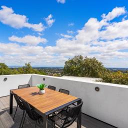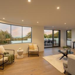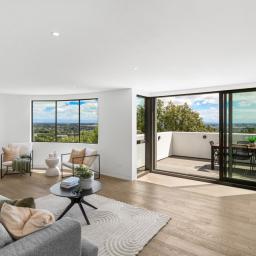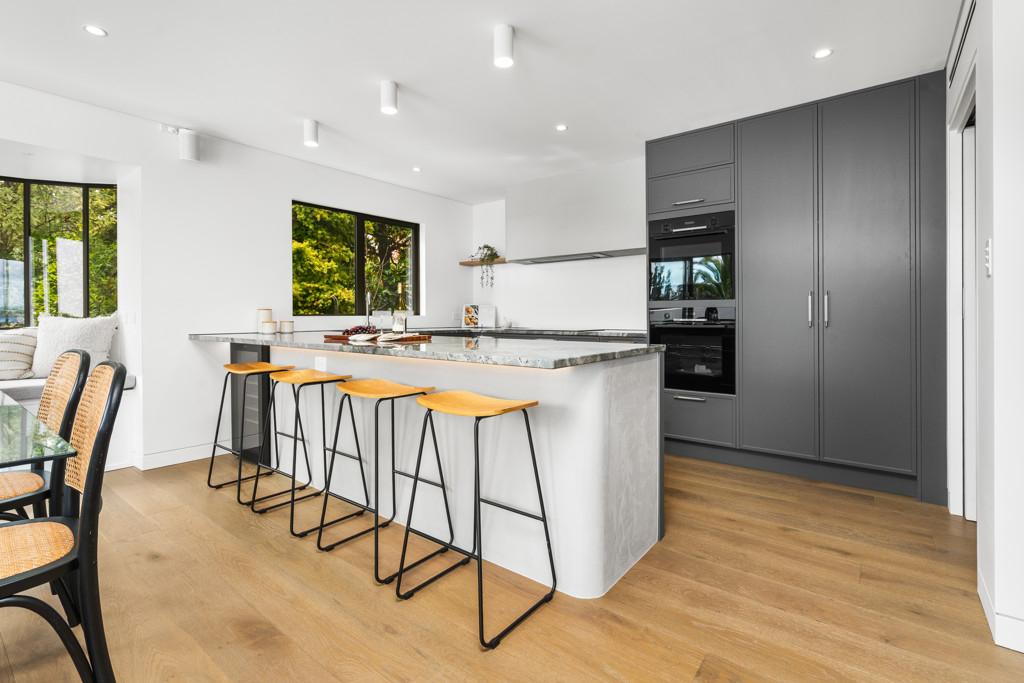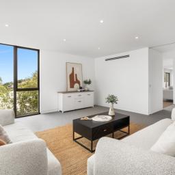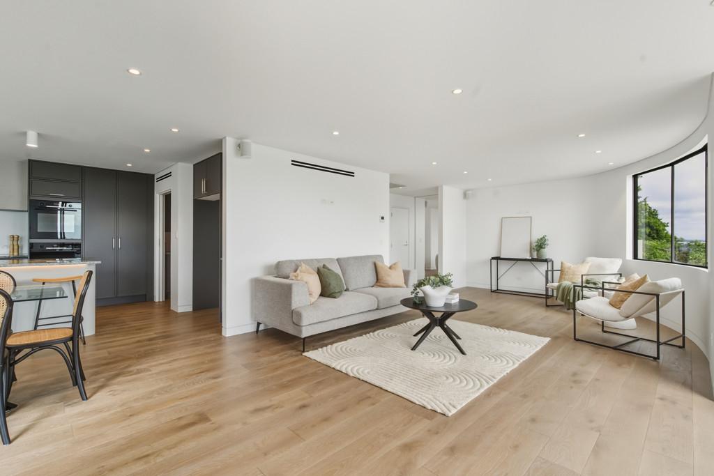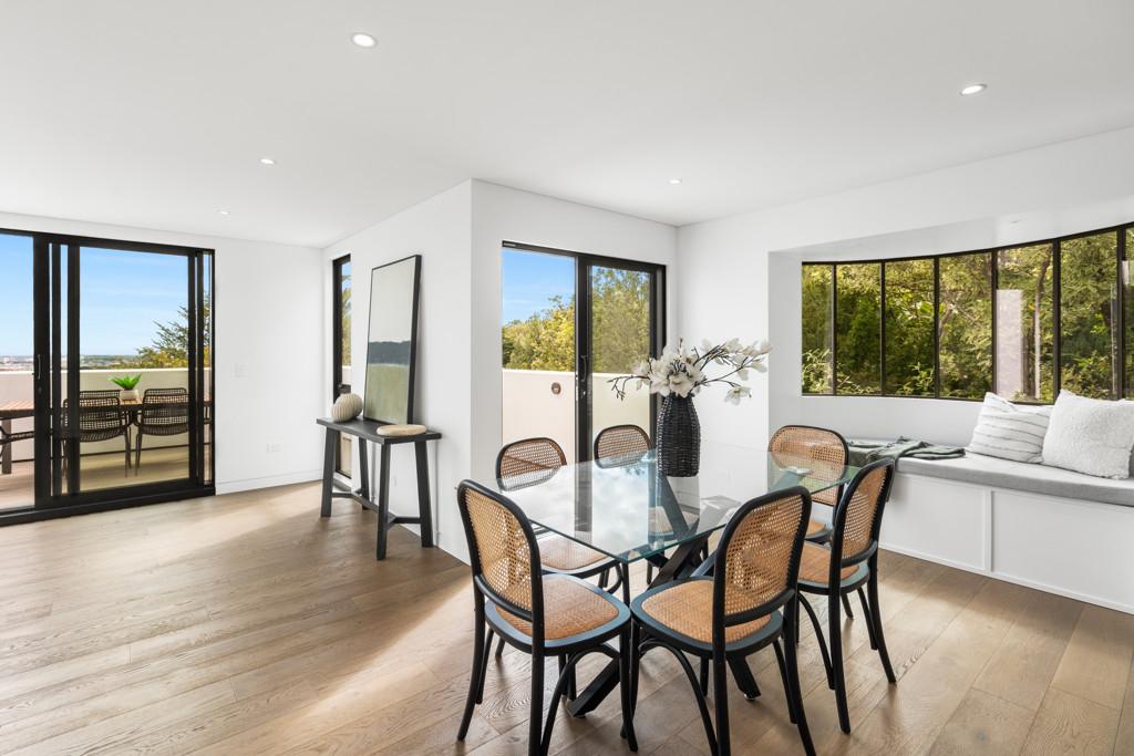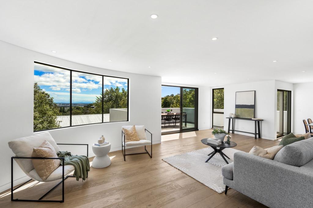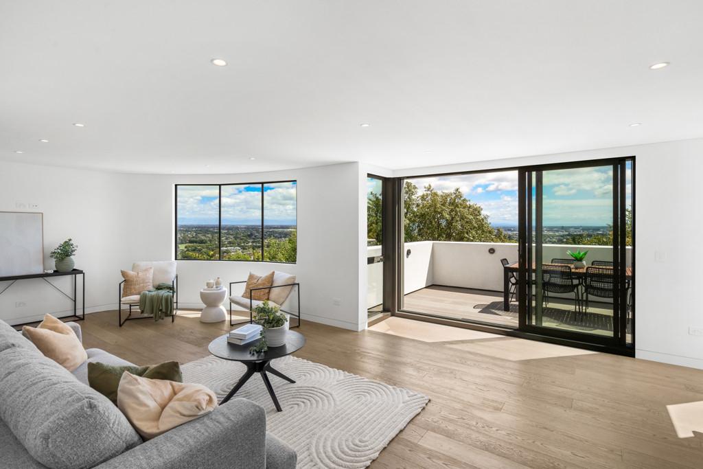 The second level is a masterclass in elevation and light, dedicated entirely to living and entertaining. The designer kitchen, with quality appliances and sleek stone surfaces, flows effortlessly into the expansive open-plan area. For those who value versatility, a second separate living room can be closed off for intimacy or would make a perfect media room, with both living spaces opening out to their own private balconies to capture the sun and the iconic vistas.